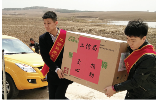 市工信局开展“送温暖,献爱心”捐献活动,并组织党员志愿者为贫困户送去捐献的衣物和书籍